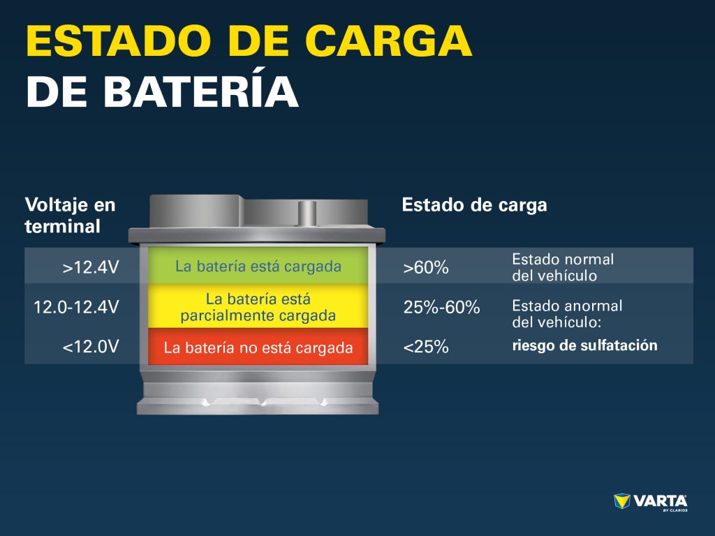 • 12,4V o menos: necesita recarga inmediata para evitar problemas de rendimiento.