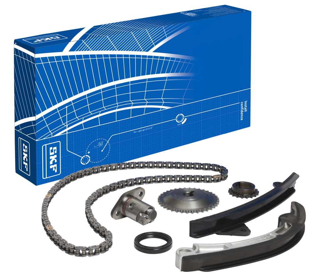 Con un creciente número de vehículos equipados con la tecnología moderna de cadena de distribución, cada vez más presente en el parque automovilístico, la demanda de este tipo de componentes de kits de reparación está aumentando. SKF ha ampliado su oferta de motor con kits de cadena de distribución de los principales modelos de automóviles europeos y asiáticos. Con esta ampliación de la gama, SKF ofrece ahora a sus clientes una de las ofertas más consistentes para los sistemas actuales cuando se trata de contenido y amplitud de gama. Los kits incluyen todas las guías necesarias, engranajes, tensores y juntas, cuando sea necesario, para ayudar a los mecánicos a trabajar con eficiencia y eficacia, mientras realizan reparaciones en el sistema de distribución.