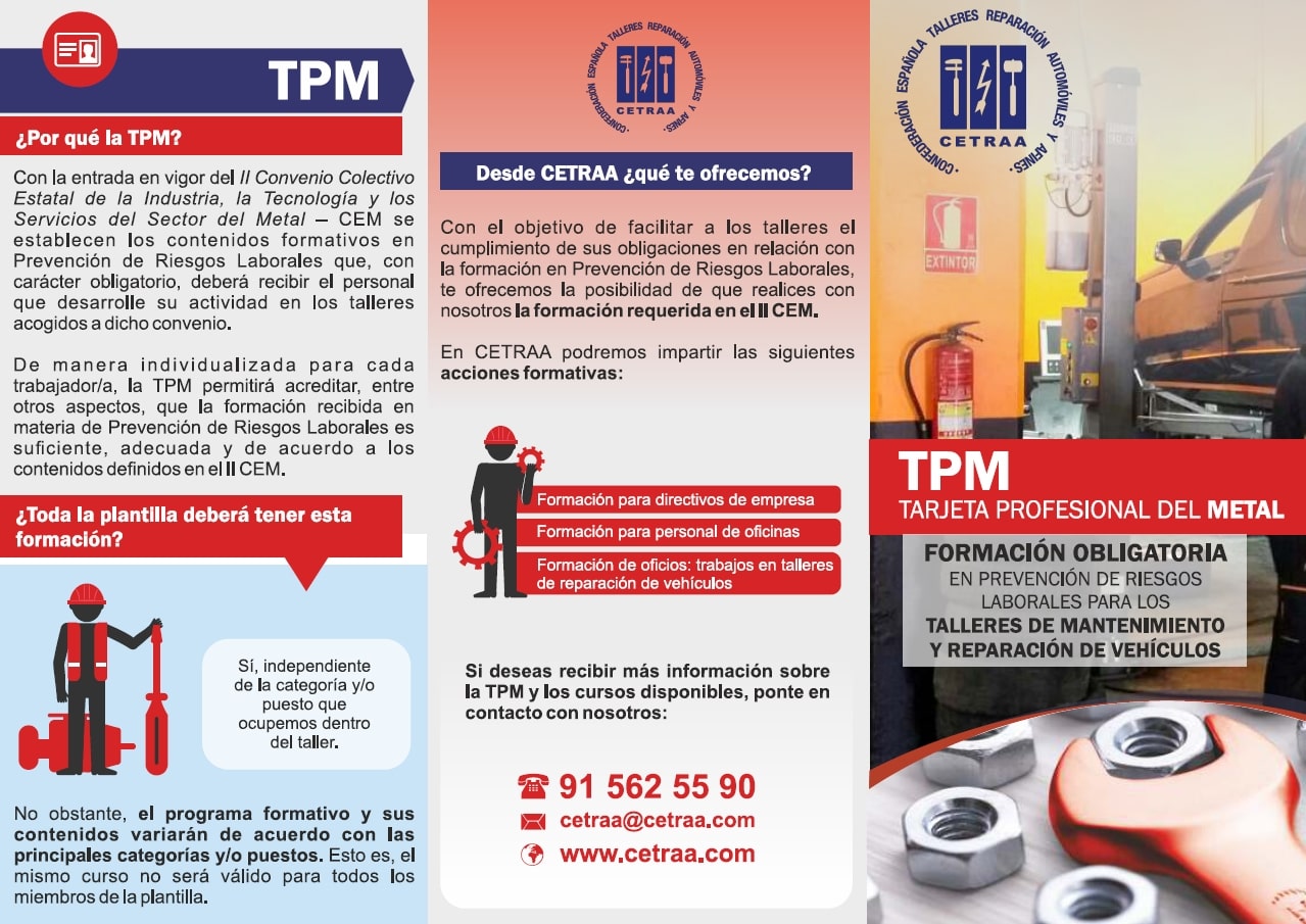 El II Convenio Colectivo Estatal del Metal (CEM), aprobado en el Boletín Oficial del Estado, contempla como uno de los principales cambios el referido al desarrollo del artículo 19 de la Ley 31/1995 de Prevención de Riesgos Laborales, en relación a la formación de los trabajadores. Así, la modificación que afecta al sector se centra en la obligatoriedad de la realización de cursos en Prevención en Riesgos Laborales (PRL). Conscientes de la trascendencia que tiene para nuestros talleres el cumplimiento de la normativa, consideramos esencial ofrecerles el programa formativo con el objetivo de facilitarles el procedimiento. En nuestra web se ha alojado una sección que refleja el contenido de los cursos específicos para cada categoría profesional. Además, nos ponemos a disposición de los profesionales en el caso de que se les plantee cualquier duda sobre esta materia.